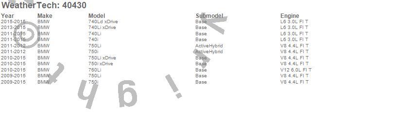 Below is an abbreviated list of applications for the Cargo Liner.740i, 740Ld xDrive, 740Li, 740Li xDrive, 750i, 750i xDrive, 750Li, 750Li xDrive, 760Li, BMW, 2015, 2014, 2013, 2012, 2011, 2010, 2009