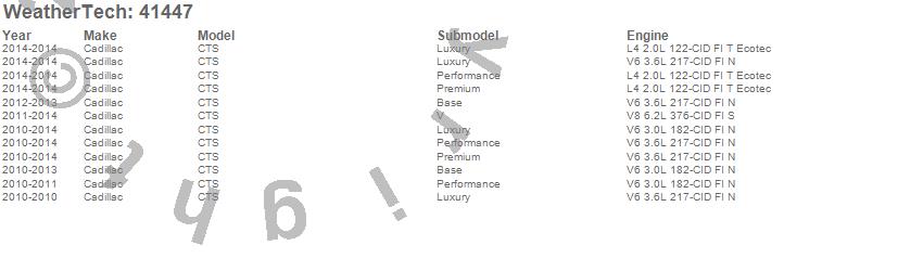 Below is an abbreviated list of applications for the Cargo Liner.CTS, Cadillac, 2014, 2013, 2012, 2011, 2010