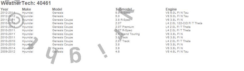 Below is an abbreviated list of applications for the Cargo Liner.Genesis, Genesis Coupe, Hyundai, 2014, 2013, 2012, 2011, 2010, 2009