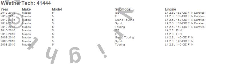 Below is an abbreviated list of applications for the Cargo Liner.5, Mazda, 2016, 2015, 2014, 2013, 2012, 2010, 2009, 2008
