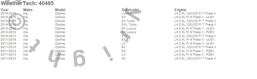 Below is an abbreviated list of applications for the Cargo Liner.Optima, Kia, 2015, 2014, 2013, 2012, 2011