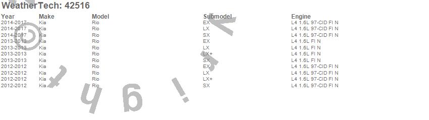 Below is an abbreviated list of applications for the Cargo Liner.Rio, Kia, 2017, 2016, 2015, 2014, 2013, 2012
