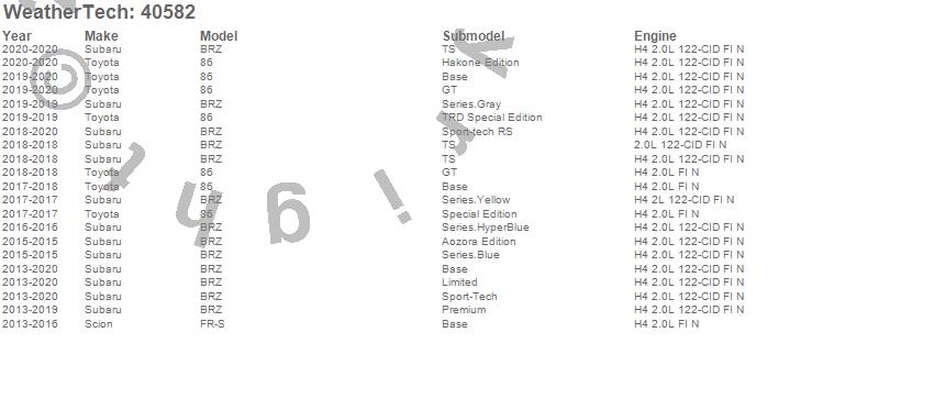 Below is an abbreviated list of applications for the Cargo Liner.86, BRZ, FR-S, Scion, Subaru, Toyota, 2020, 2019, 2018, 2017, 2016, 2015, 2014, 2013