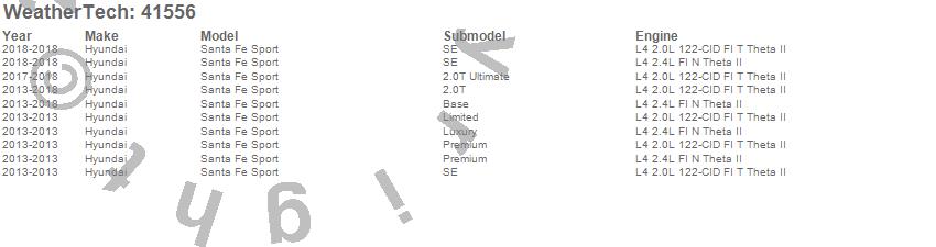 Below is an abbreviated list of applications for the Cargo Liner.Santa Fe Sport, Hyundai, 2018, 2017, 2016, 2015, 2014, 2013