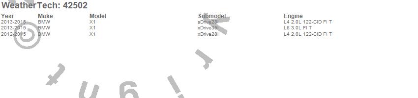 Below is an abbreviated list of applications for the Cargo Liner.X1, BMW, 2015, 2014, 2013, 2012