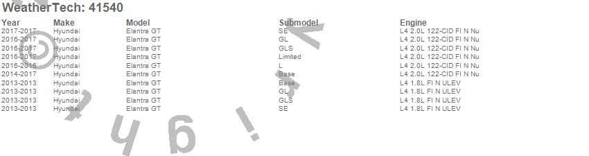 Below is an abbreviated list of applications for the Cargo Liner.Elantra GT, Hyundai, 2017, 2016, 2015, 2014, 2013