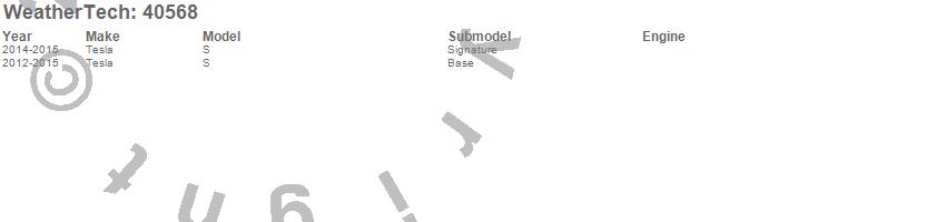 Below is an abbreviated list of applications for the Cargo Liner.S, Tesla, 2015, 2014, 2013, 2012