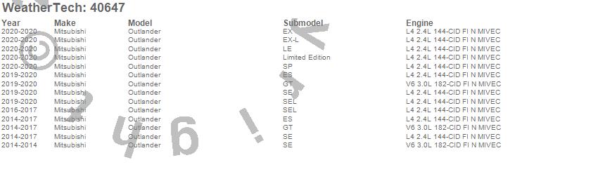 Below is an abbreviated list of applications for the Cargo Liner.Outlander, Mitsubishi, 2020, 2019, 2017, 2016, 2015, 2014