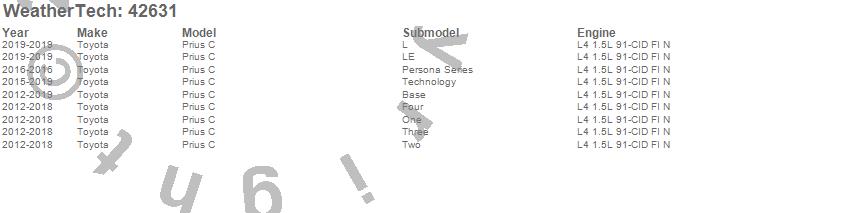 Below is an abbreviated list of applications for the Cargo Liner.Prius C, Toyota, 2019, 2018, 2017, 2016, 2015, 2014, 2013, 2012