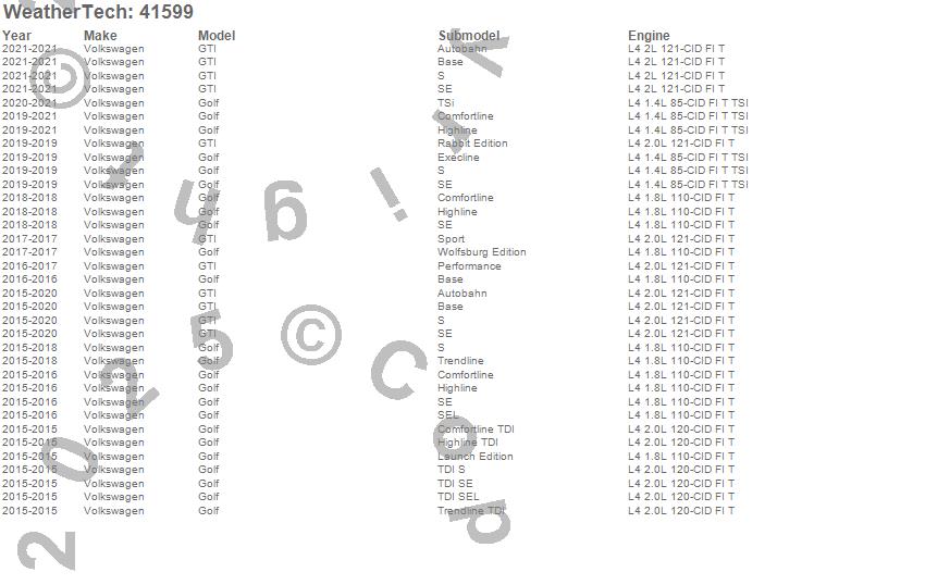 Below is an abbreviated list of applications for the Cargo Liner.Golf, GTI, Volkswagen, 2021, 2020, 2019, 2018, 2017, 2016, 2015