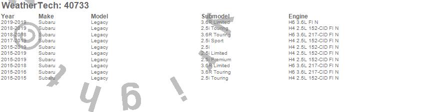 Below is an abbreviated list of applications for the Cargo Liner.Legacy, Subaru, 2019, 2018, 2017, 2016, 2015
