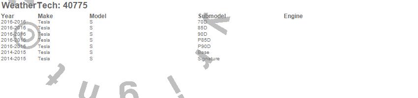 Below is an abbreviated list of applications for the Cargo Liner.S, Tesla, 2016, 2015, 2014