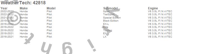 Below is an abbreviated list of applications for the Cargo Liner.Pilot, Honda, 2022, 2021, 2020, 2019, 2018, 2017, 2016