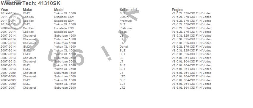 Below is an abbreviated list of applications for the Cargo Liner w/Bumper Protector.Escalade ESV, Suburban 1500, Suburban 2500, Yukon XL 1500, Yukon XL 2500, Cadillac, Chevrolet, GMC, 2014, 2013, 2012, 2011, 2010, 2009, 2008, 2007