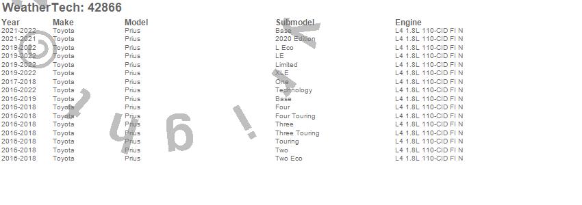 Below is an abbreviated list of applications for the Cargo Liner.Prius, Toyota, 2022, 2021, 2020, 2019, 2018, 2017, 2016