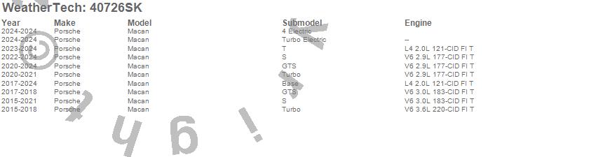 Below is an abbreviated list of applications for the Cargo Liner w/Bumper Protector.Macan, Porsche, 2026, 2025, 2024, 2023, 2022, 2021, 2020, 2019, 2018, 2017, 2016, 2015