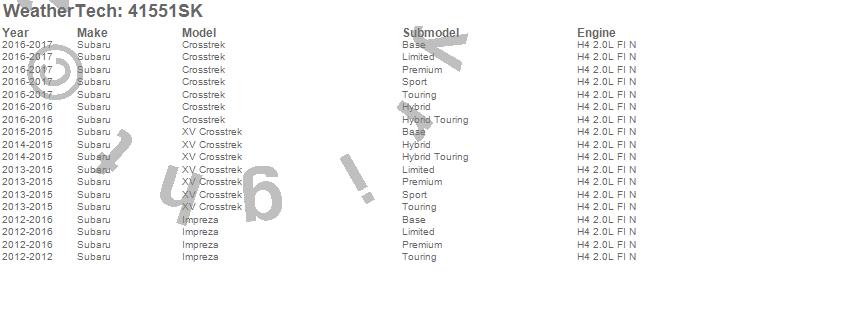 Below is an abbreviated list of applications for the Cargo Liner w/Bumper Protector.Crosstrek, Impreza, XV Crosstrek, Subaru, 2017, 2016, 2015, 2014, 2013, 2012