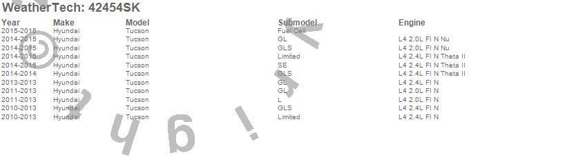 Below is an abbreviated list of applications for the Cargo Liner w/Bumper Protector.Tucson, Hyundai, 2015, 2014, 2013, 2012, 2011, 2010