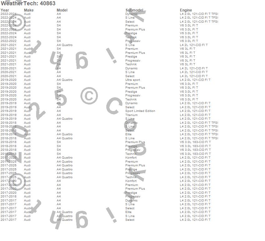 Below is an abbreviated list of applications for the Cargo Liner.A4, A4 Quattro, S4, Audi, 2025, 2024, 2023, 2022, 2021, 2020, 2019, 2018, 2017