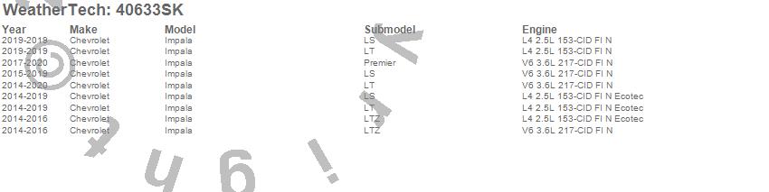 Below is an abbreviated list of applications for the Cargo Liner w/Bumper Protector.Impala, Chevrolet, 2020, 2019, 2018, 2017, 2016, 2015, 2014