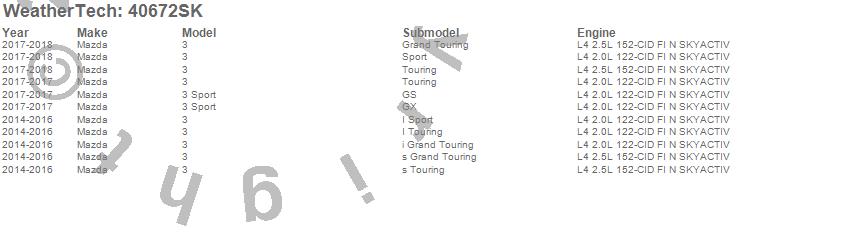 Below is an abbreviated list of applications for the Cargo Liner w/Bumper Protector.3, 3 Sport, Mazda, 2018, 2017, 2016, 2015, 2014