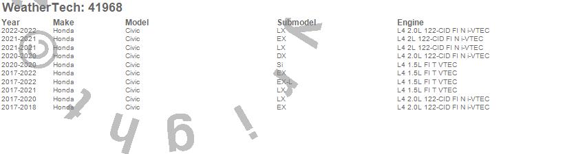 Below is an abbreviated list of applications for the Cargo Liner.Civic, Honda, 2022, 2021, 2020, 2019, 2018, 2017