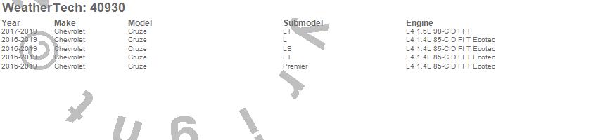 Below is an abbreviated list of applications for the Cargo Liner.Cruze, Chevrolet, 2019, 2018, 2017, 2016