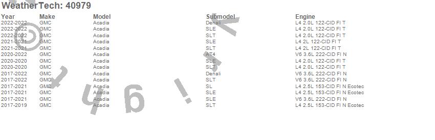 Below is an abbreviated list of applications for the Cargo Liner.Acadia, GMC, 2022, 2021, 2020, 2019, 2018, 2017