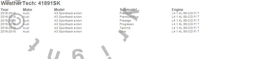 Below is an abbreviated list of applications for the Cargo Liner w/Bumper Protector.A3 Sportback e-tron, Audi, 2018, 2017, 2016