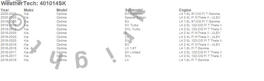 Below is an abbreviated list of applications for the Cargo Liner w/Bumper Protector.Optima, Kia, 2020, 2019, 2018, 2017, 2016