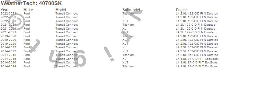 Below is an abbreviated list of applications for the Cargo Liner w/Bumper Protector.Transit Connect, Ford, 2023, 2022, 2021, 2020, 2019, 2018, 2017, 2016, 2015, 2014