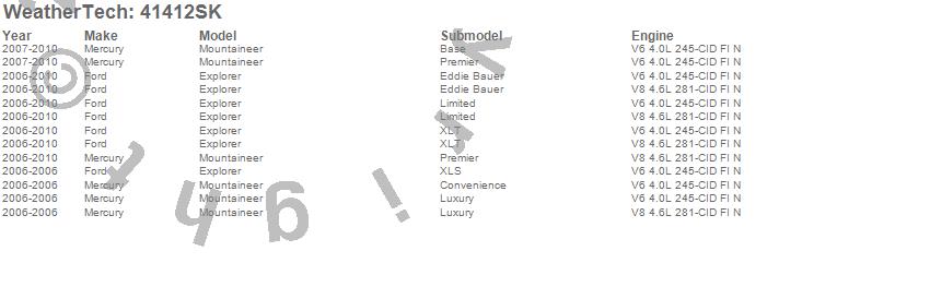 Below is an abbreviated list of applications for the Cargo Liner w/Bumper Protector.Explorer, Mountaineer, Ford, Mercury, 2010, 2009, 2008, 2007, 2006
