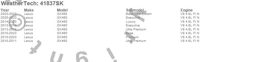 Below is an abbreviated list of applications for the Cargo Liner w/Bumper Protector.GX460, Lexus, 2023, 2022, 2021, 2020, 2019, 2018, 2017, 2016, 2015, 2014, 2013, 2012, 2011, 2010