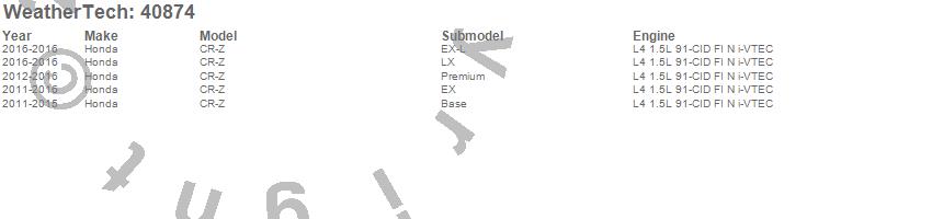 Below is an abbreviated list of applications for the Cargo Liner.CR-Z, Honda, 2016, 2015, 2014, 2013, 2012, 2011