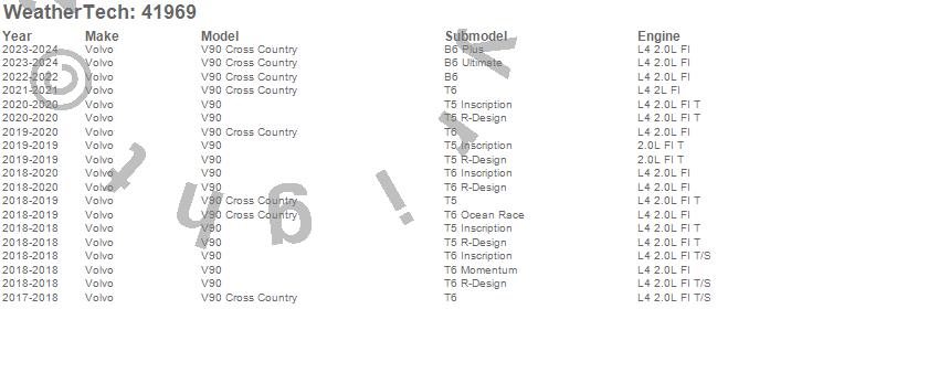 Below is an abbreviated list of applications for the Cargo Liner.V90, V90 Cross Country, Volvo, 2024, 2023, 2022, 2021, 2020, 2019, 2018, 2017
