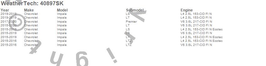 Below is an abbreviated list of applications for the Cargo Liner w/Bumper Protector.Impala, Chevrolet, 2020, 2019, 2018, 2017, 2016, 2015