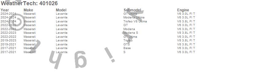 Below is an abbreviated list of applications for the Cargo Liner.Levante, Maserati, 2024, 2023, 2022, 2021, 2020, 2019, 2018, 2017