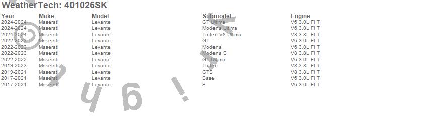 Below is an abbreviated list of applications for the Cargo Liner w/Bumper Protector.Levante, Maserati, 2024, 2023, 2022, 2021, 2020, 2019, 2018, 2017
