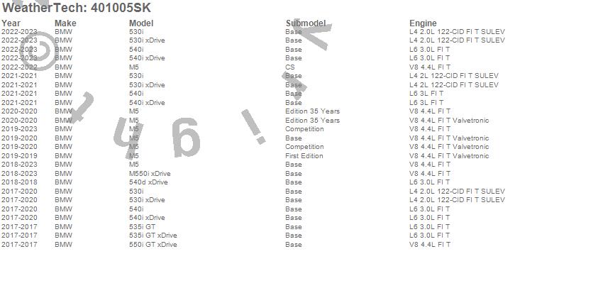 Below is an abbreviated list of applications for the Cargo Liner w/Bumper Protector.530i, 530i xDrive, 535i GT, 535i GT xDrive, 540d xDrive, 540i, 540i xDrive, 550i GT xDrive, M5, M550i xDrive, BMW, 2023, 2022, 2021, 2020, 2019, 2018, 2017