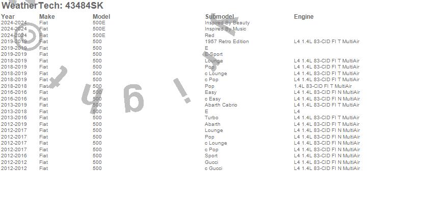 Below is an abbreviated list of applications for the Cargo Liner w/Bumper Protector.500, 500E, Fiat, 2024, 2019, 2018, 2017, 2016, 2015, 2014, 2013, 2012
