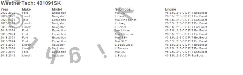 Below is an abbreviated list of applications for the Cargo Liner w/Bumper Protector.Expedition, Navigator, Ford, Lincoln, 2024, 2023, 2022, 2021, 2020, 2019, 2018