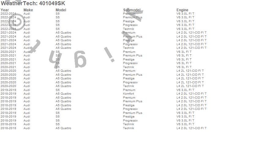 Below is an abbreviated list of applications for the Cargo Liner w/Bumper Protector.A5 Quattro, S5, Audi, 2024, 2023, 2022, 2021, 2020, 2019, 2018
