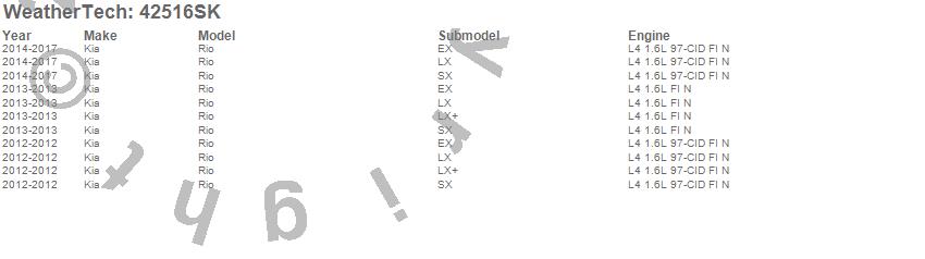 Below is an abbreviated list of applications for the Cargo Liner w/Bumper Protector.Rio, Kia, 2017, 2016, 2015, 2014, 2013, 2012