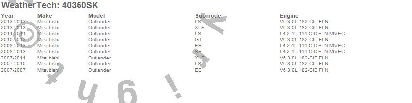 Below is an abbreviated list of applications for the Cargo Liner w/Bumper Protector.Outlander, Mitsubishi, 2013, 2012, 2011, 2010, 2009, 2008, 2007