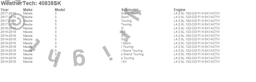 Below is an abbreviated list of applications for the Cargo Liner w/Bumper Protector.3, Mazda, 2018, 2017, 2016, 2015, 2014