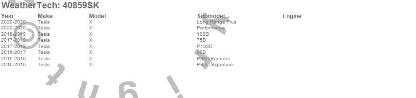 Below is an abbreviated list of applications for the Cargo Liner w/Bumper Protector.X, Tesla, 2020, 2019, 2018, 2017, 2016
