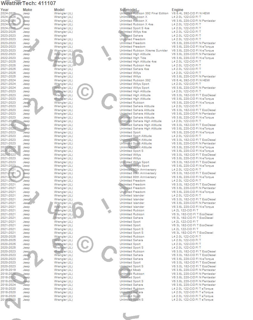 Below is an abbreviated list of applications for the Cargo Liner.Wrangler, Wrangler (JL), Jeep, 2026, 2025, 2024, 2023, 2022, 2021, 2020, 2019, 2018