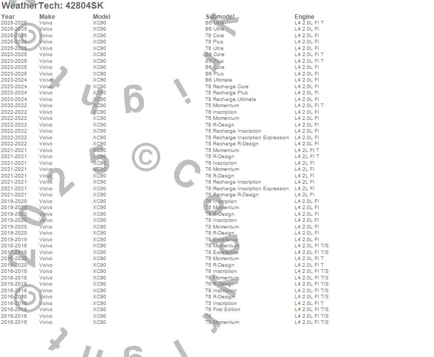 Below is an abbreviated list of applications for the Cargo Liner w/Bumper Protector.XC90, Volvo, 2026, 2025, 2024, 2023, 2022, 2021, 2020, 2019, 2018, 2017, 2016