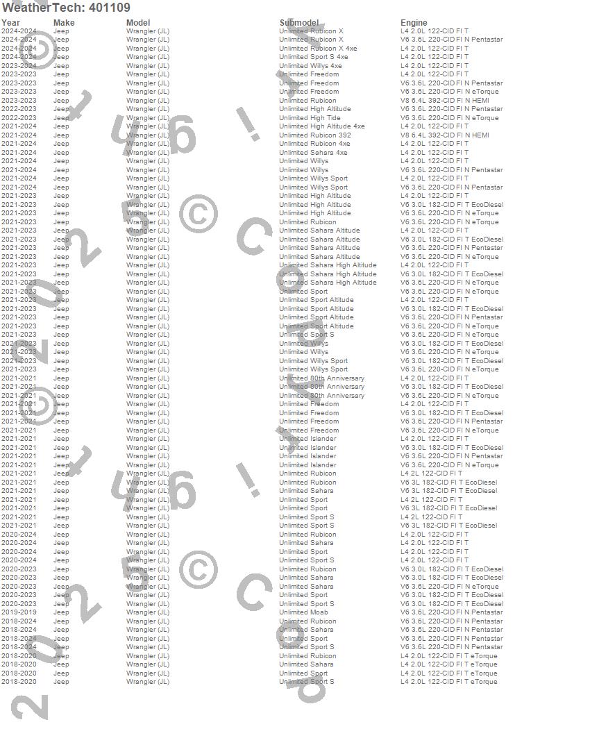 Below is an abbreviated list of applications for the Cargo Liner.Wrangler, Wrangler (JL), Jeep, 2026, 2025, 2024, 2023, 2022, 2021, 2020, 2019, 2018