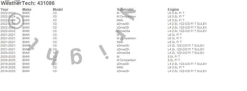 Below is an abbreviated list of applications for the Cargo Liner.X3, BMW, 2024, 2023, 2022, 2021, 2020, 2019, 2018